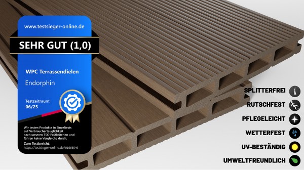 Endorphin ® 2m² Braun WPC Terrassendielen Komplettset Note 1.0 lt Testsieger-Online Test von Juni 20 Endorphin ® 2m² Braun WPC Terrassendielen...