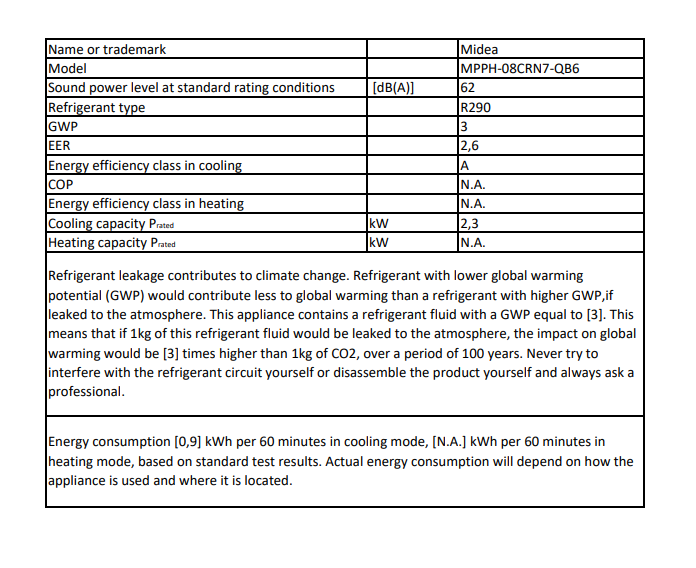 Produktinformationen "Comfee MPPH-08CRN7 Monoblock Klimagerät weiß Aussteller"