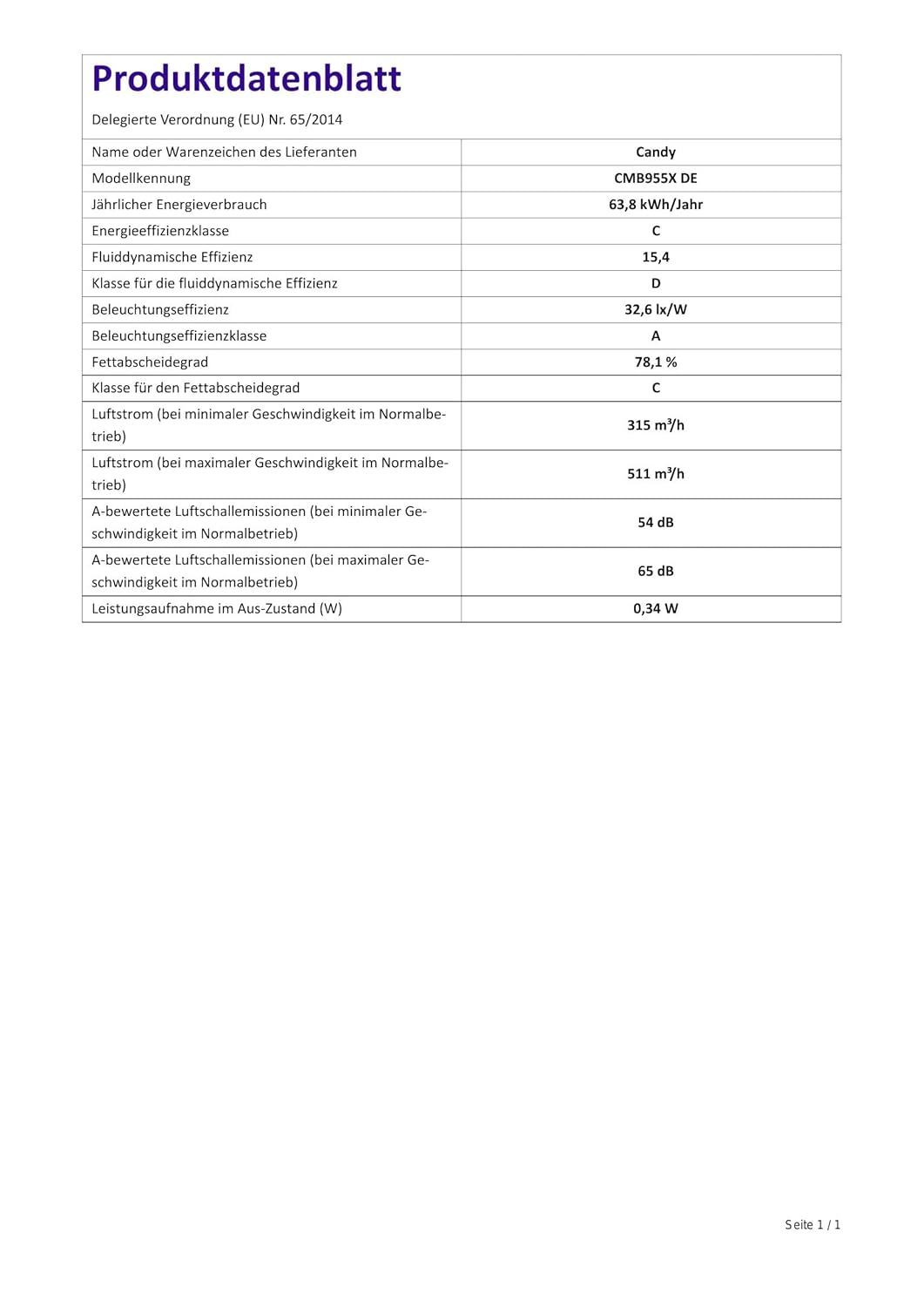 Weiterführende Links zu "Candy CMB955X 90cm Breite / 213W Leistung / 3 Leistungsstufen/max. Luftleistung: 511m³/h"